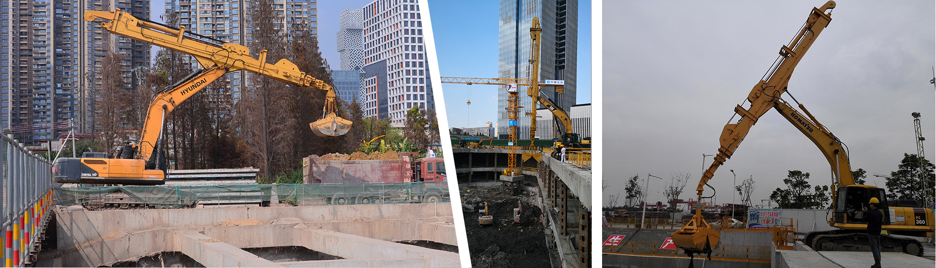 產(chǎn)品主要有:挖掘機(jī)標(biāo)準(zhǔn)臂、挖掘機(jī)加長(zhǎng)臂、二段式加長(zhǎng)臂、拆樓臂、抓木器、挖斗、抓鋼機(jī)、松土器、液壓震動(dòng)打樁錘等挖掘機(jī)前端裝置。產(chǎn)品行銷(xiāo)60多個(gè)國(guó)家和地區(qū),已為眾多地鐵施工、水電站、核電站、市政工程、河涌清淤等大型工程項(xiàng)目提供產(chǎn)品配套服務(wù)。